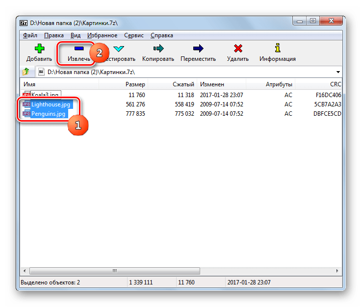 Кроме того, внутри заархивированной папки можно выбрать нужные элементы и на вкладке Извлечь выбрать место для извлечения файлов.