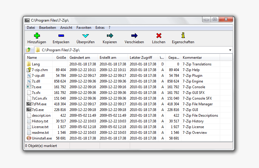 Конечно, она может упаковывать и распаковывать архивы в других форматах (XZ, BZIP2, GZIP, TAR, ZIP и WIM) и распаковывать файлы ARJ, CAB, CHM, CPIO, CramFS, DEB, DMG, FAT, HFS, ISO, LZH, LZMA, MBR, MSI, NSIS, NTFS, RAR, RPM, SquashFS, UDF, VHD, WIM, XAR и Z. Программа может похвастаться возможностью создания самораспаковывающихся архивов 7z, встроенным менеджером файлов, а также поддержкой командной строки.