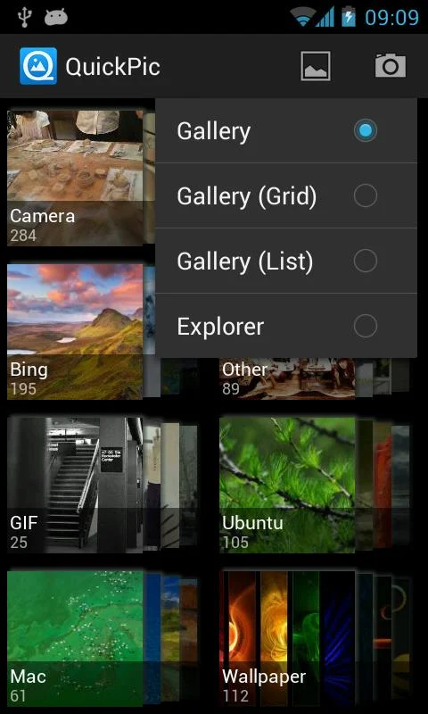 Простая галерея почти аналогична QuickPic.Это почти аналогично в случае с пользовательским интерфейсом. Приложение позволяет изменять режим просмотра и сортировки в самом приложении с другими компонентами настройки, такими как размер столбца, цвета и кнопки.