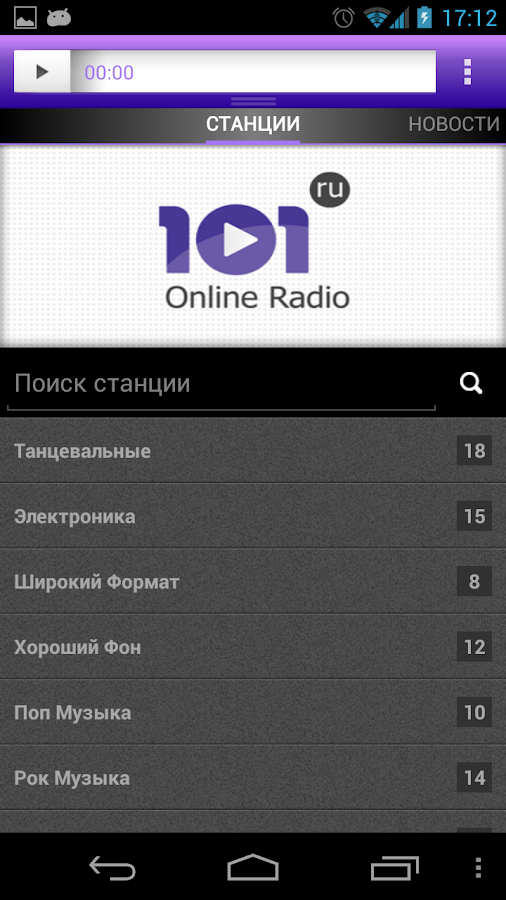 В приложении можно послушать следующие радиостанции и ещё 1200 станций: Авторадио Европа Плюс Ретро FM Дорожное радио Русское Радио Радио Шансон Радио Energy Юмор FM Comedy Radio Радио Монте-Карло Наше Радио Радио 7 на семи холмах Relax FM Хит FM Like FM Радио Джаз Серебряный Дождь Радио Звезда Maximum Rock FM DFM Радио Romantika Эхо Москвы Коммерсантъ FM Бизнес FM Радонеж Вести FM Маяк Говорит Москва Радио России Комсомольская правда Детское Радио Радио Шоколад Москва FM Радио Культура Такси FM Жара FM Мегаполис FM Новое Радио Studio 21/Спорт FM Capital FM Радио Русские Песни Радио Premium Супердискотека 90-х Зайцев. FM Поп Пилот FM Lounge FM Chill Out San FM Relax Lounge FM Terrace Сибирь NPO Soul & Jazz