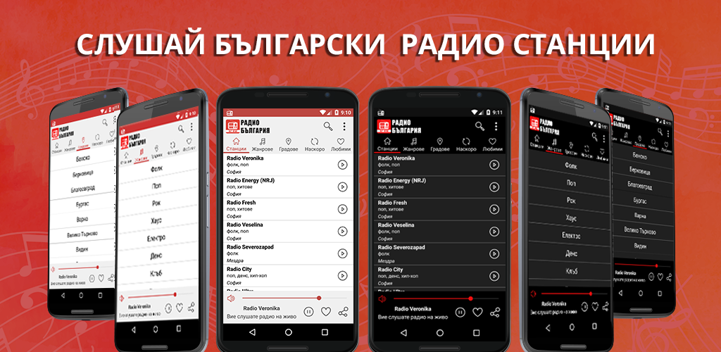 В нашем приложении Вы найдете более 1200 радиостанций всех жанров: Наша музыка, Поп, Рок, Ретро, Диско, Танцевальная музыка, Шансон, Реп, R&B, Хип-хоп, Джаз, Электронная, Deep, House, Этническая, Фолк, Релакс, Классическая музыка, Разговорное радио.