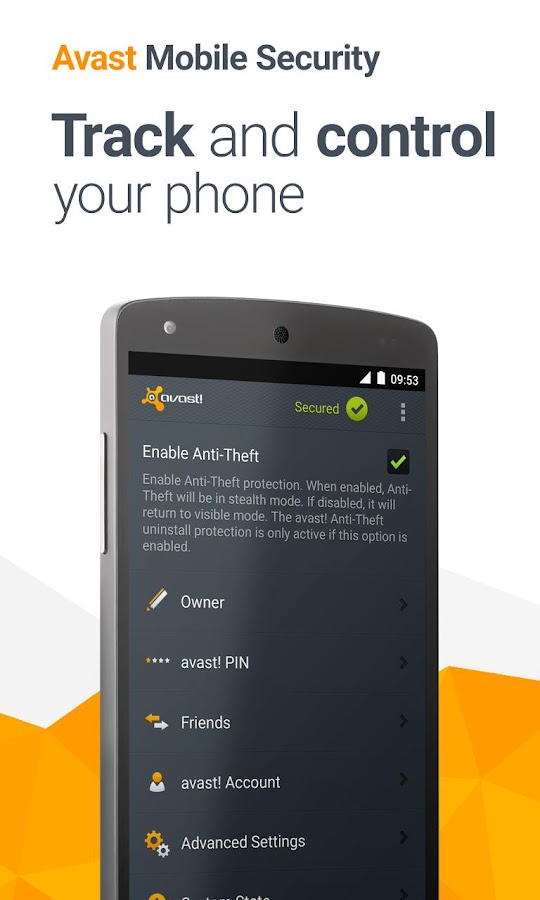 ■ Управляйте своим Android удаленно через веб-интерфейс или SMS (чтобы позже управлять своим телефоном удаленно, перейдите по адресу: http://my.avast.com).