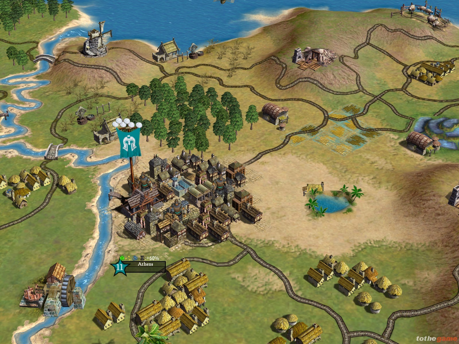Каждый город занимает несколько плиток, поэтому вы можете строить свои города по своему усмотрению, чтобы в полной мере использовать местный ландшафт.