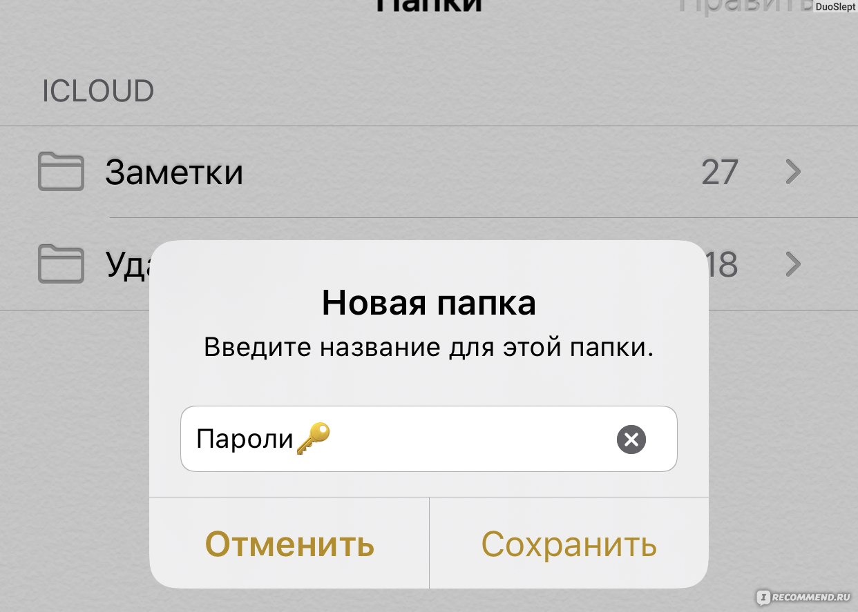 Перейдя к программе на основной странице предоставляется возможность нажав на плюс сразу начать делать запись. Сначала нужно ввести название новой заметки – заголовок, а ниже начинать писать текст. После того, как запись закончена в нижнем левом углу экрана есть кнопка «папки». Кликнув по этой вкладке открывается список с названием имеющихся папок. Если ни одно из названий не подходит, то есть возможность создать новый каталог.