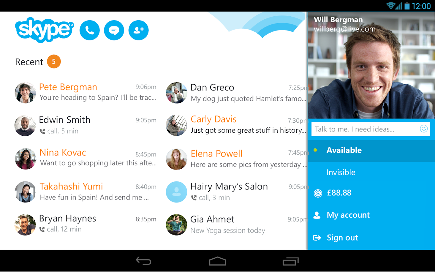 Приложение Skype для android дает возможность позвонить человеку в любой точке мира, независимо от времени суток.