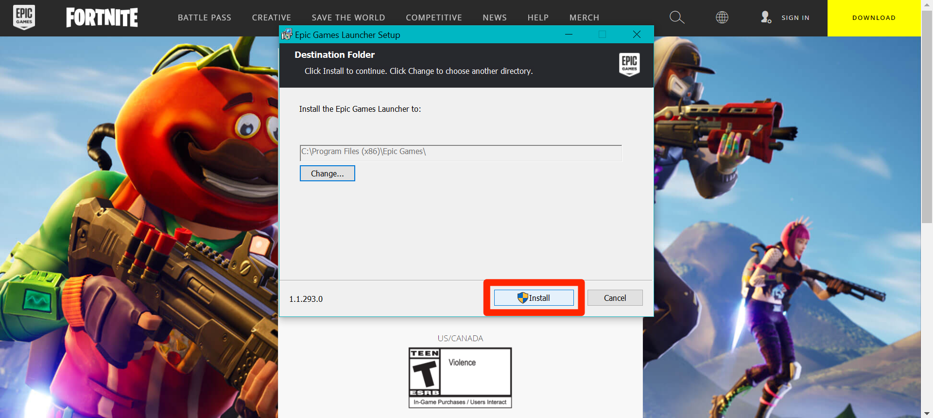 - Нажмите на плитку Fortnite, затем нажмите Играть и выберите Продолжить , когда вас попросят войти в свою учетную запись Epic Games.