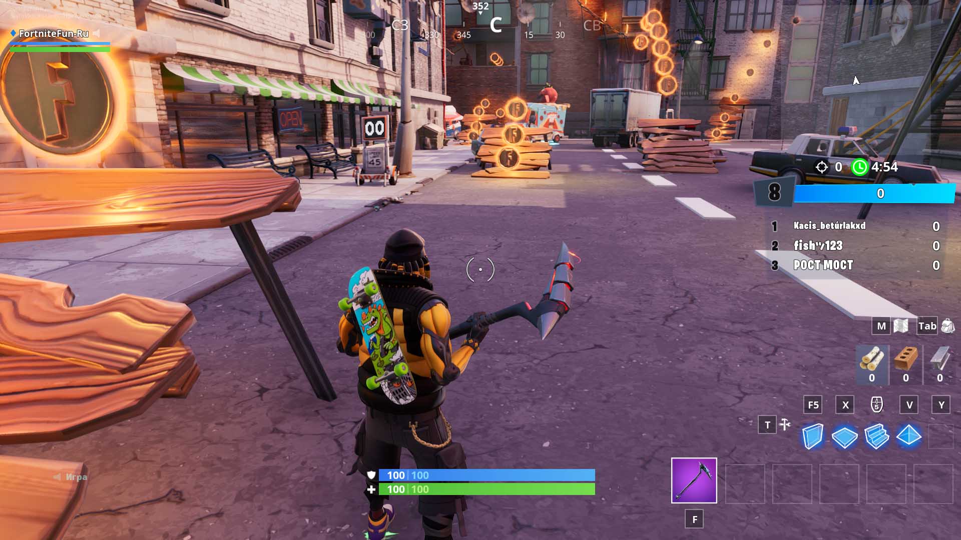 FortniteСтроительные материалы бывают трех видов: дерево, кирпич и металл. Используйте свою кирку (единственное оружие, с которым вы начинаете) на любых строениях, которые вы видите (деревья, дома, камни и т.