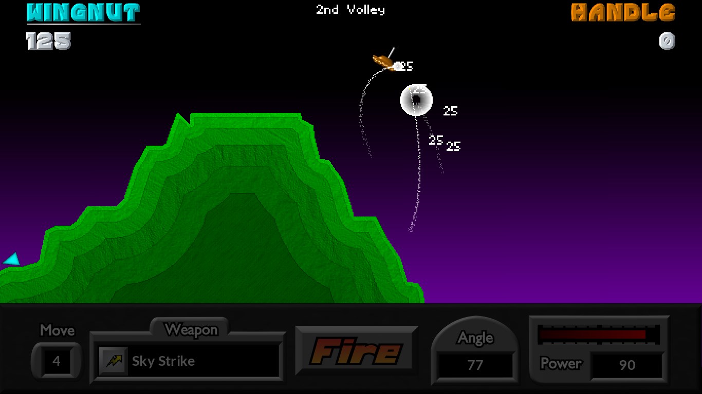 Ландшафт, который вы выберете, повлияет на то, как вы будете играть в игру, так как вашему танку придется пересекать этот ландшафт, чтобы атаковать, и использовать другие части в качестве укрытия. Есть много других переменных, которые могут сделать атаку проще или сложнее. Ветер будет играть определенную роль и может быть установлен в начале игры, если вы хотите.