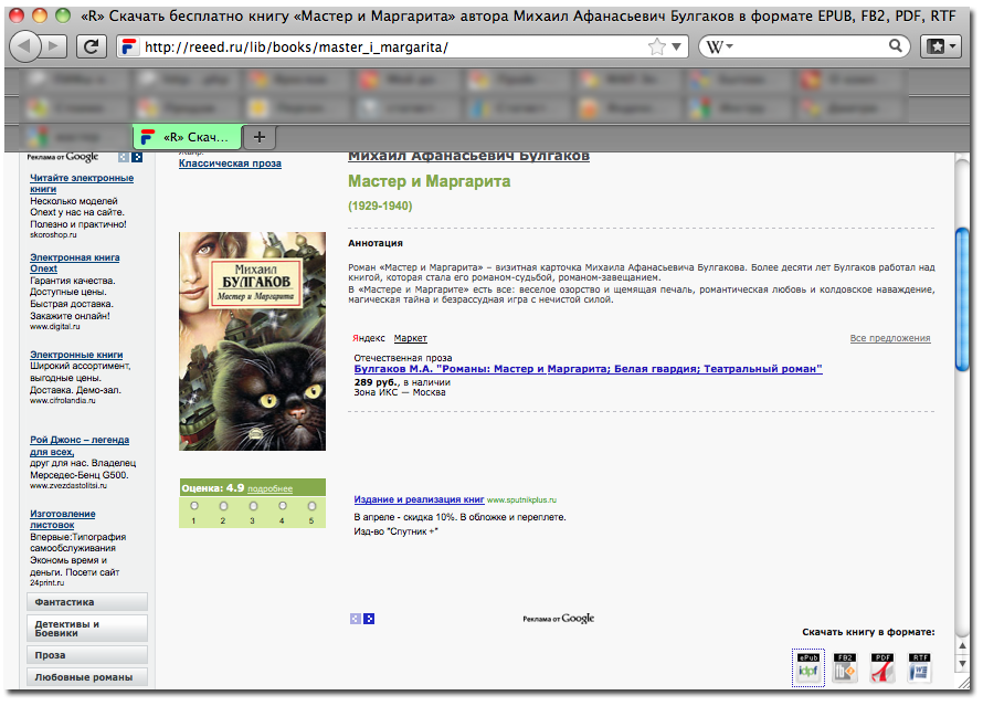 Здесь Вы сможете просмотреть книги из различных подборок и хиты продаж, выполнить поиск книг по автору или теме. Выбрав книгу, можно купить и загрузить ее.