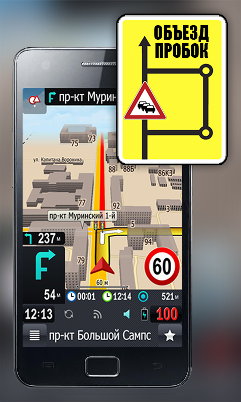 Это многофункциональный gps-навигатор, который отображает трафик на дорогах в режиме реального времени, оповещает об авариях и и т. д. — все это на русском языке.