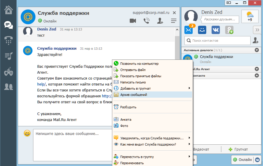 После того как вы ввели все данные, вы наконец то появитесь в самом агенте, где можете начать добавлять в контакты своих друзей, родственников и коллег. Переписываться с ними и звонить по видеосвязи, поддержка майл ру уже будет у вас в контактах по умолчанию.