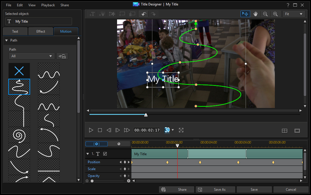 Дорожка титров содержит эффекты титров, которые в течение их действия отображаются поверх всех клипов основной видеодорожки.