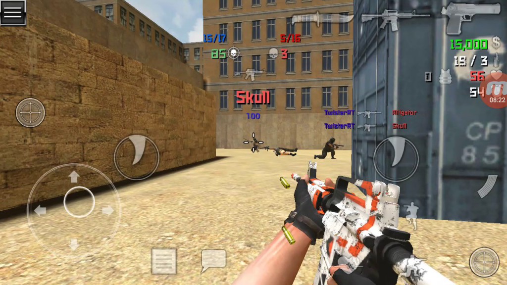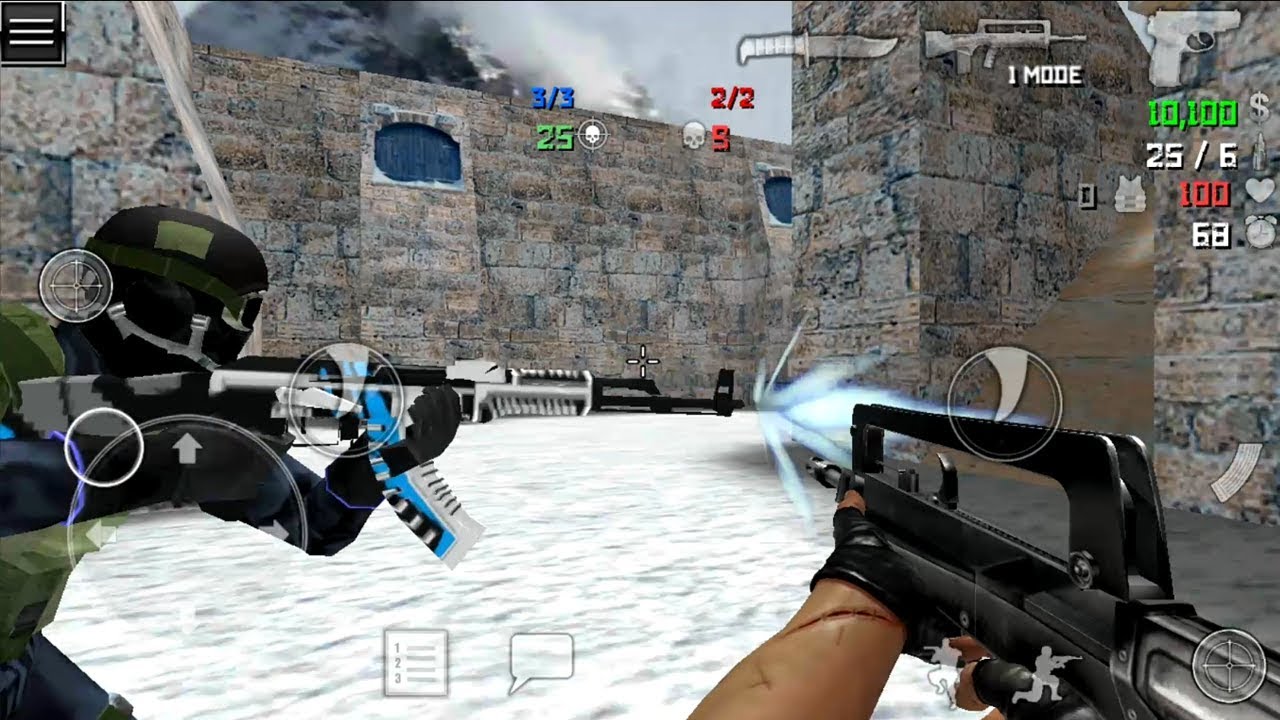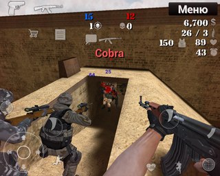 Прежде всего стоит отметить, что в данной игре, кроме однопользовательского режима, который хорош, если вы хотите потренироваться в игре и освоиться с управлением, имеется еще режим мультиплеера. Причем подключение возможно при помощи вай-фай соединения. Таким образом, вы сможете подключиться к своим товарищам, чтобы сразиться вместе с ними в одной команде. Надо лишь выбрать сторону, за которую вы будете выступать: за спецназ или за террористов, и отправляться в путь. Еще один вариант соединения — через Bluetooth.