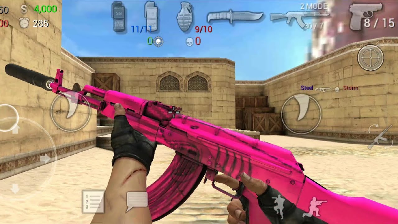Исправлены ошибки на карте Castle.Последний раз игра обновлялась 20 декабря. 2016. Его размер загрузки относительно велик — 84,57 МБ. Поскольку игра была доступна для скачивания. он был загружен более 1 000 000 раз. Разработчик — ForgeGames. У вас будет доступ к режиму обезвреживания бомбы в игре, и вам также придется пробиваться, чтобы захватить флаг. Также. вы можете играть в скрытом режиме, метая ножи вместо стрельбы из пистолета. Это позволит вам застать врага врасплох.
