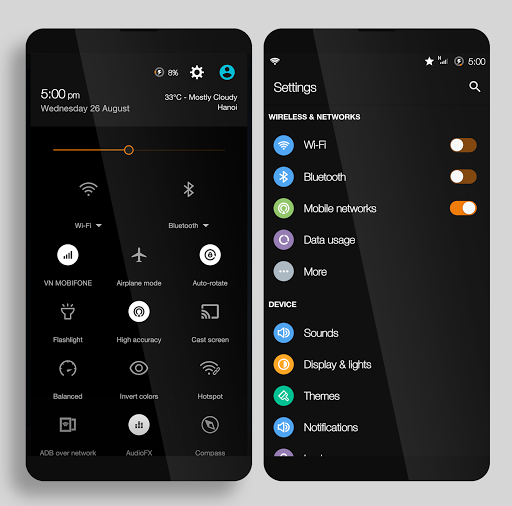 Нет-нет, я не прошу вас установить AOSP Extended Custom ROM на ваше устройство, несмотря на то, что это один из моих любимых ROM. Тем не менее, расширенная тема AOSP направлена на то, чтобы дать вам почти такой же «расширенный» вид на вашем устройстве MIUI. Тема AOSP Extended поставляется с круглыми значками и темно-серой / черной темой. Мне особенно нравятся быстрые настройки в этой теме, которая предлагает прозрачный вид фона. Тема является одной из самых стабильных, которые я использовал, и, хотя она не является AOSP как таковой, она намного лучше во всех смыслах благодаря стабильности и настраиваемым значкам.