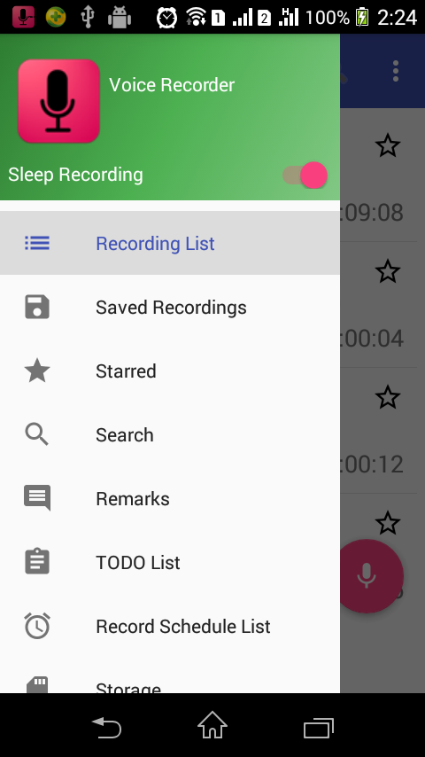 Запись в фоновом режиме (в этом случае можно спокойно пользоваться смартфоном и запускать другие приложения).