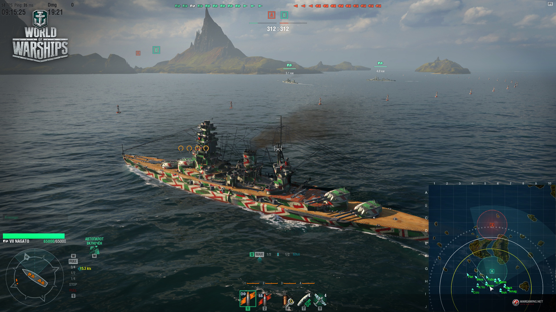 Игроку после регистрации в «Мире Warships», к слову сказать регистрация простая без заморочек, предлагается роль капитана, который и управляет судном – отдает приказы двигаться, стрелять и маневрировать. Только стоит учесть, что корабли куда менее поворотливы, чем танки – или, тем более, летательные аппараты. Как следствие, темп игры не слишком высок, равно как и напряжение. Пока корабль плывет из точки А в точку Б, вполне можно сходить на кухню сделать чаю и нарезать бутербродов – ведь впереди самое интересное!