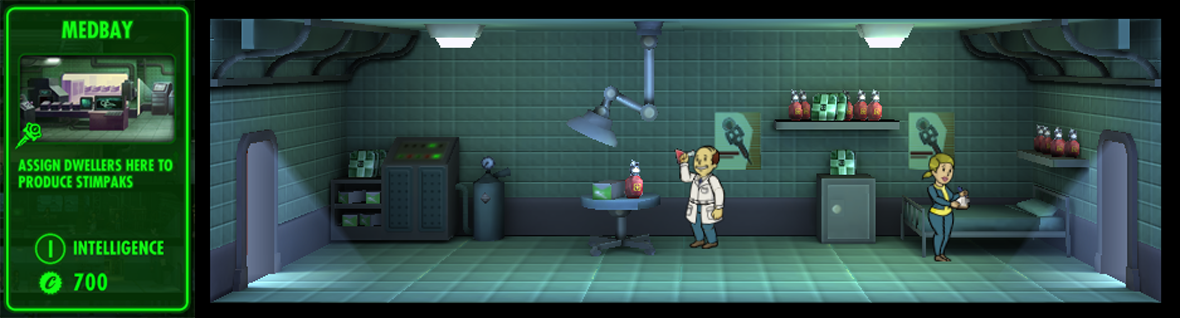 Fallout Shelter предлагает на выбор два типа лабораторий: стимуляторы и Radaway. Лаборатории отвечают за производство лекарств и полезных предметов в жизни жителей.