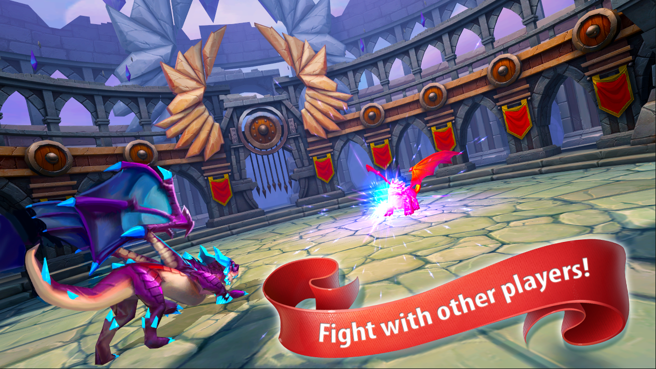 Сражайся с другими драконами не только в сюжет игре, а так же на арене с игроками по всему миру.
