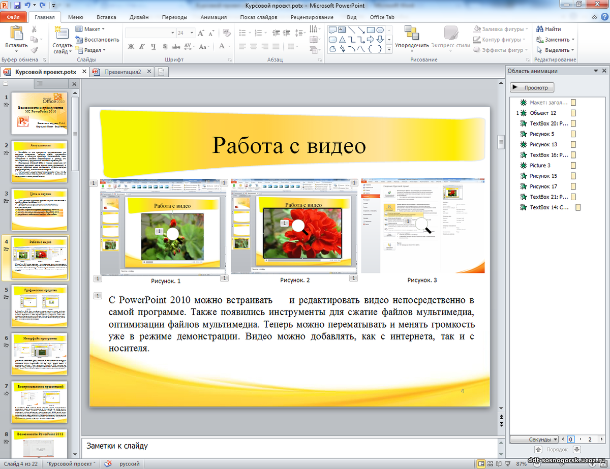 Новая панель «Анимация» помогает создавать и настраивать анимацию, а усовершенствованные переходы между слайдами обеспечивают безупречный вид готового продукта.Легко делитесь своей презентацией и приглашайте других работать над одной презентацией одновременно.