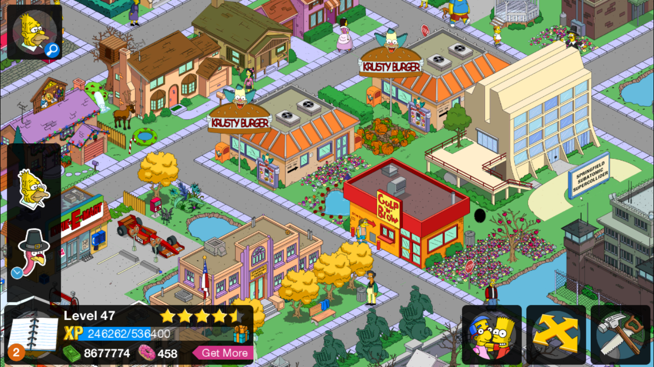 Это красочное продолжения мультфильма выполнено в этом же стиле графики. Но теперь вы сможете сами участвовать в жизни главы семейства. Игра очень проста в управлении, достаточно одного пальца, чтобы перемещаться по меню игры и выполнять разнообразные задания. Строительство домов, их улучшений и украшения. Здесь каждый может создать уникальный Спригфилд по собственному усмотрению. Перемещайте вещи, выбирайте место для размещения и получайте деньги и опыт за каждое выполненное задания.