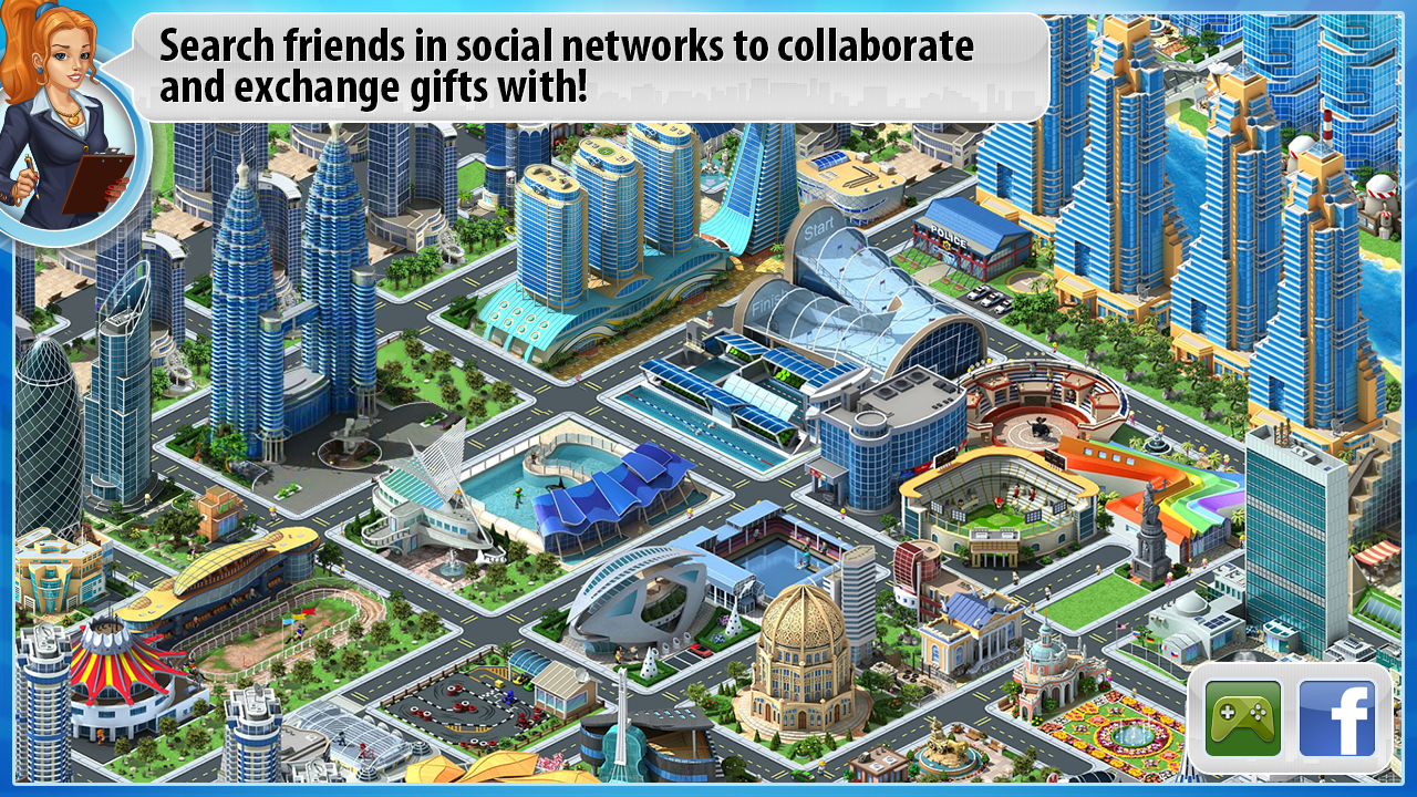 Каждый может построить свой город мечты и делится собственными достижениями. Постройте город по собственным предпочтениям и смотри как в нем живут люди. Очень важно наблюдать за экономической частью игры и эффективно управлять городом. Имея деньги Мегаполис игрок может построить город будущего. В игре большое количество технологий и разработок, которые вы можете внедрить в город. Используйте все новинки архитектуры и стилей для создания гармоничного мегаполиса. Очень важно взаимодействовать с друзьями в игре. Если друзья уже играют, то добавьте их в свой круг общения игры и назначайте их сборщиками налогов, чтобы автоматизировать процессы. Делитесь секретами с друзьями и развивайтесь вместе.