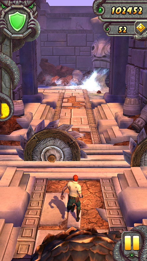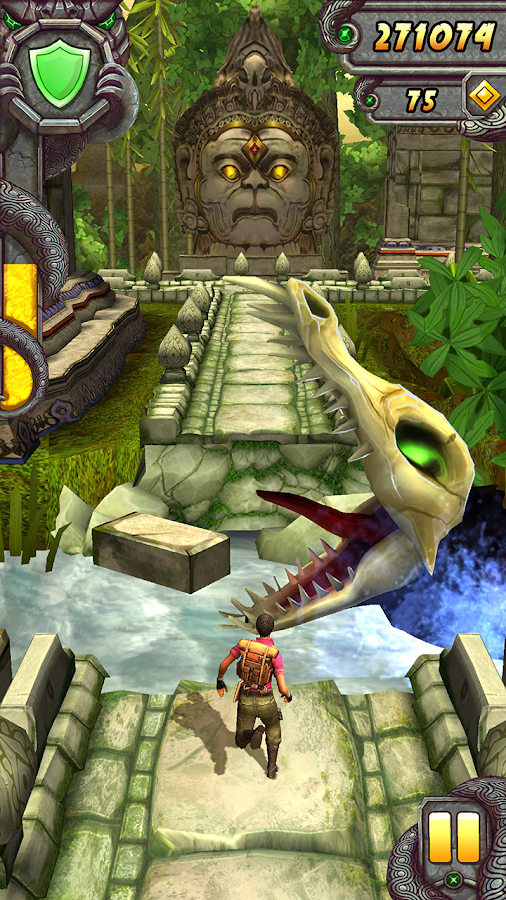 Для фанатов Temple Run выпустили следующую часть Temple Run 2, в которой вам предстоит столкнуться с новыми приключениями! Начальную идею создатели сохранили. Бегущий человек, преодолевающий всевозможные препятствия на своем пути. Главный герой, похитив ценный тотем из древнейшего храма, теперь вынужден спасать свою жизнь, убегая сломя голову от огромного страшного зверя, охранявшего реликвию. В отличие однообразных мрачных джунглей первой игры, здесь вы увидите яркое красивое окружение! В этот раз – замки с пещерами, водопадами, мостами. Бежать придется то на поднебесной высоте, то в подземелье с железной дорогой и крутыми поворотами. Радует то, что при всем изобилии локаций, объектов на экране никогда не бывает слишком много. Картинка не утомляет, а наоборот – притягивает как магнит. Управлять игрой несложно. Для поворота на 90 градусов – свайп вправо или влево, движение вверх – для прыжков, вниз – для подкатов, наклон устройства вправо-влево – для перемещений в стороны.