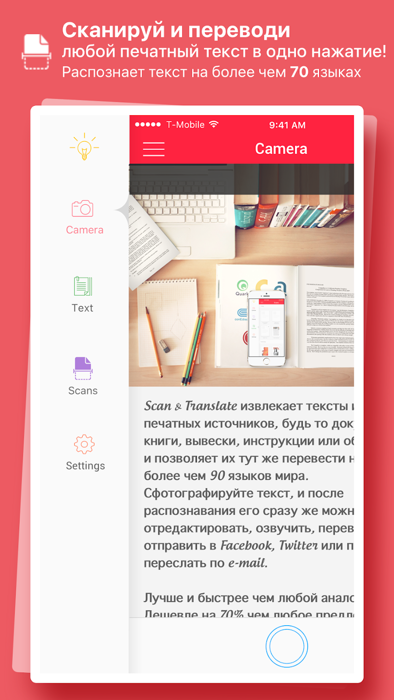 Распознавание и перевод текстов с фото для iPhone, Android
