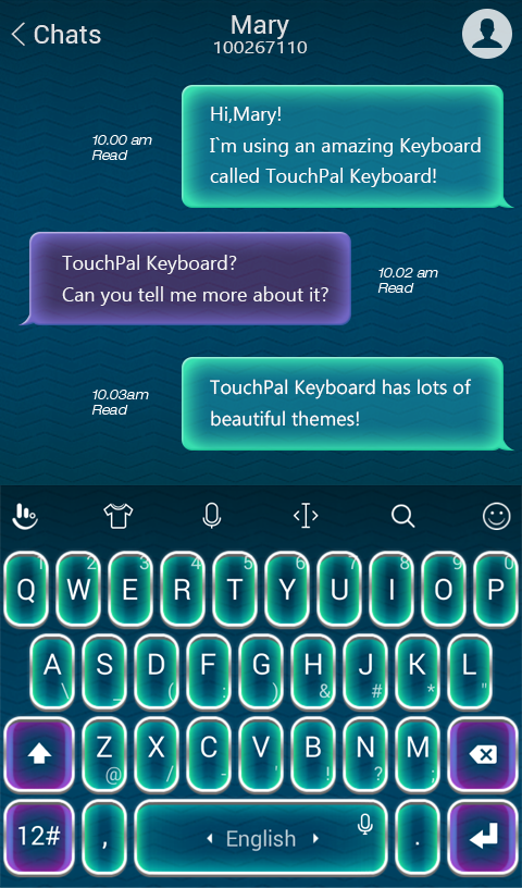 Приложение TouchPal сделает текстовые сообщения увлекательными и интересными. С различными функциями это приложение поможет вам свести к минимуму опечатки в текстовых сообщениях. Приложение приятно с простым и дружественным интерфейсом. Конечно, вдвоём пользователям будет проще управлять этим приложением на своём смартфоне. Разработчик этого приложения, команда GOMO S, предлагает множество тем для клавиатуры с потрясающими и превосходными цветами. Я уверен, что конкретная тема с красивым цветом украсит клавиатуру для интересных текстовых сообщений.