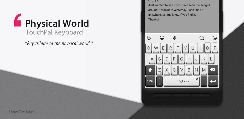 ***Feel free to give us ★★★★★, if you like TouchPal Android keyboard 2018, which has single handedly, frown face, happy text emoticons, glide typing, gesture typing, T+ & T9, next-word prediction, various keyboard themes, emoji keyboard themes, autocorrect, predictive text, dictate text and correction of typos feature. ***More ideas & feedback? Contact: [email protected]
