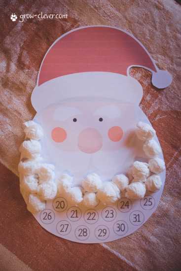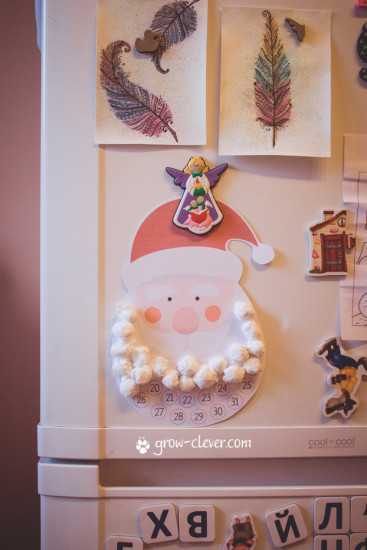 2. Покажите ребёнку календарь и расскажите ему, что каждый день вы вместе будете приклеевать новый пом-пон или ватный шарик. Когда все круги с цифрами закончатся, прийдёт Новый год. Каждый день адвент календарь будет дарить ребёнку новое задание.