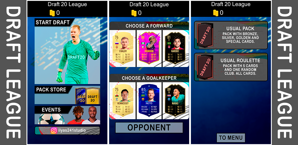 After selecting a preferred formation, users are then required to fill a 23-man squad via the method of player picks. These player picks are completely random and consist of a choice of five players for each position/slot within your Draft squad.