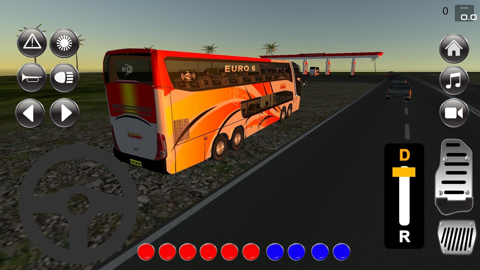 КАК ИГРАТЬ — Запустите свой автобус с помощью кнопки Start / Stop. — В правой части экрана переведите переключатель в положение «D». — Управляйте своим автобусом, используя кнопки остановки и ускорения.